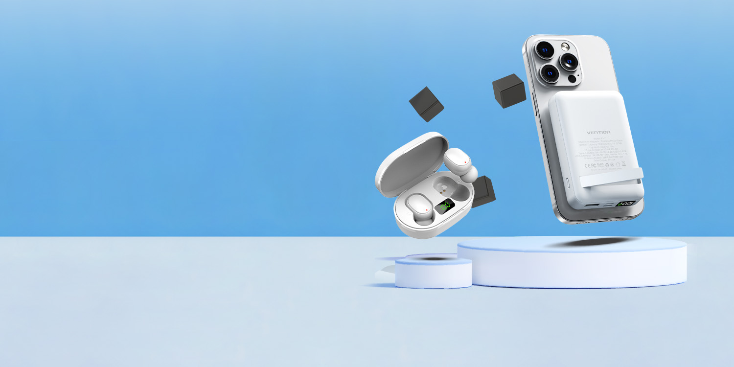 Vention Powerbank 10000mAh 22.5W Built in Cable Fast Charging Dual Port USB-C USB-A for iPhone Android