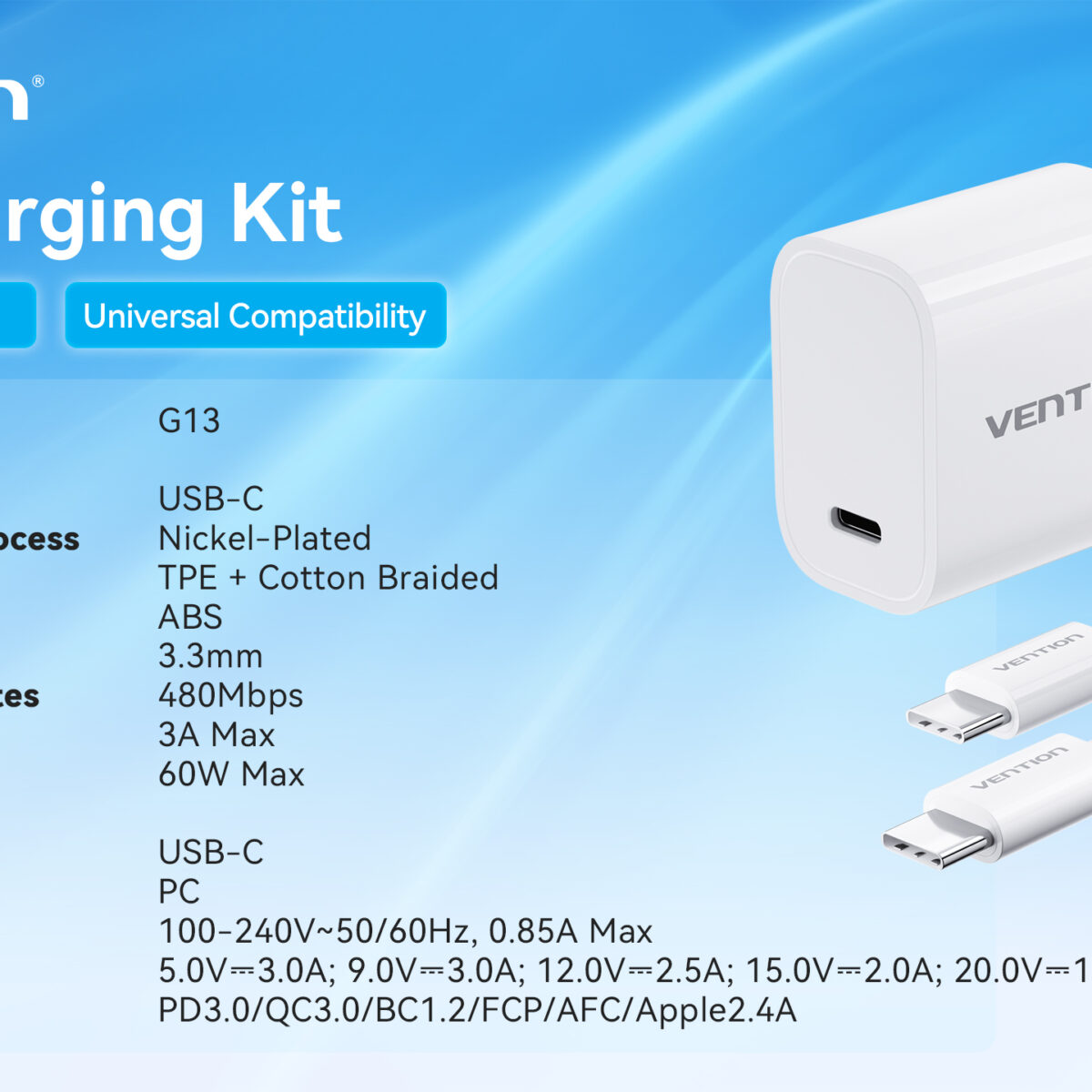 Vention 30W Charging Kit USB-C to USB-C PD 3.0 Fast Charging Support QC 3.0 FCP Original