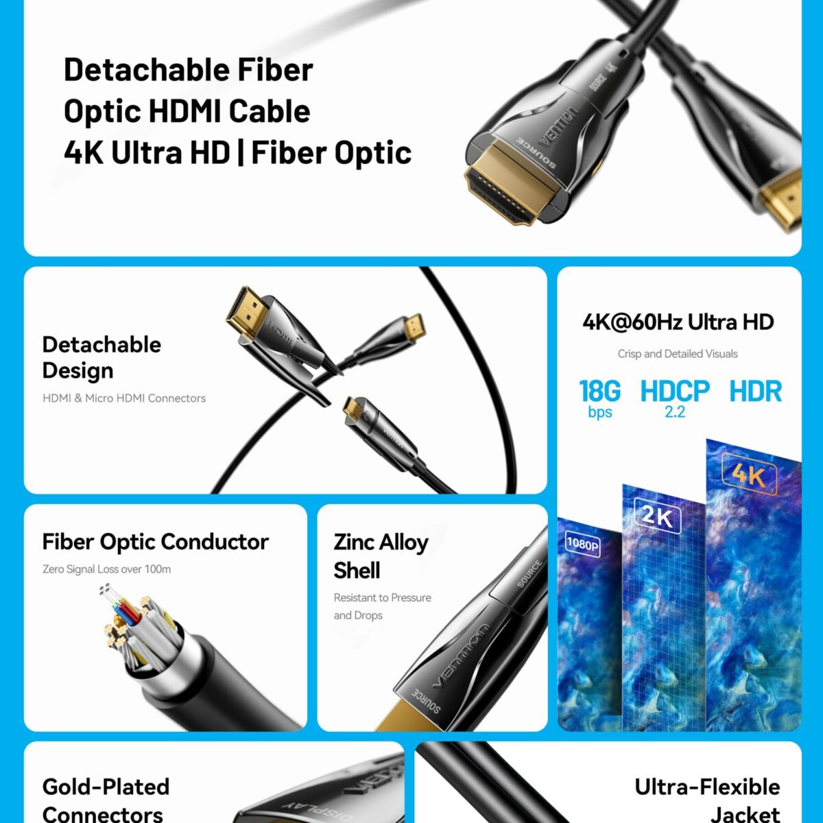 Vention Kabel HDMI Optical Fiber Optik 4K Detachable Micro HDMI to HDMI HDCP 2.2