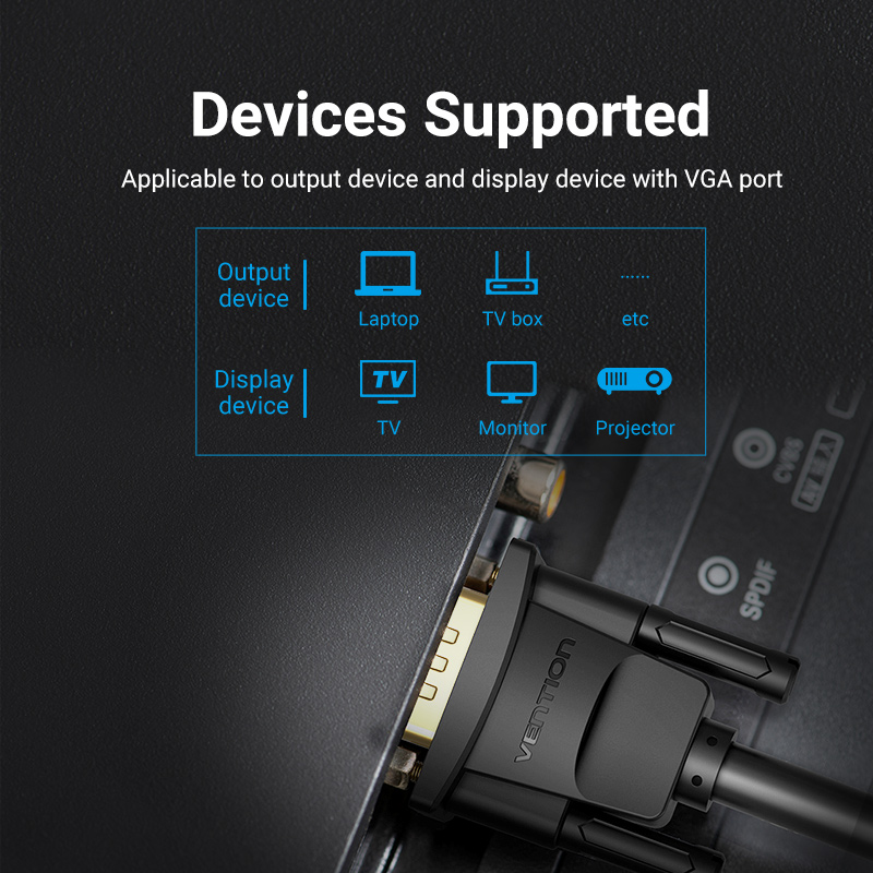VGA Cable High Grade 3+6 with Ferrite Core PVC Black