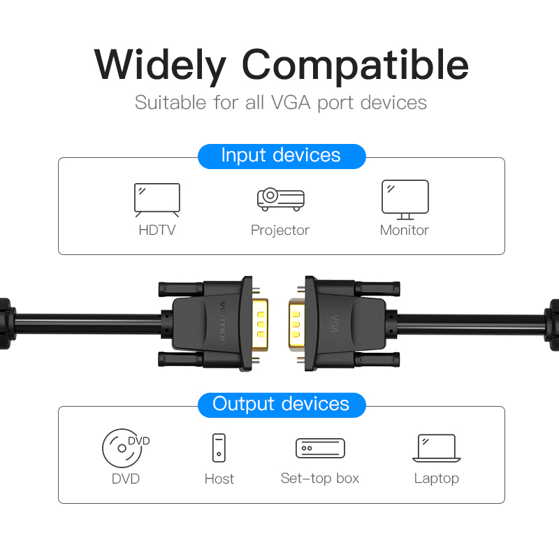 VGA Cable High Grade 3+9 with Ferrite Core PVC Black
