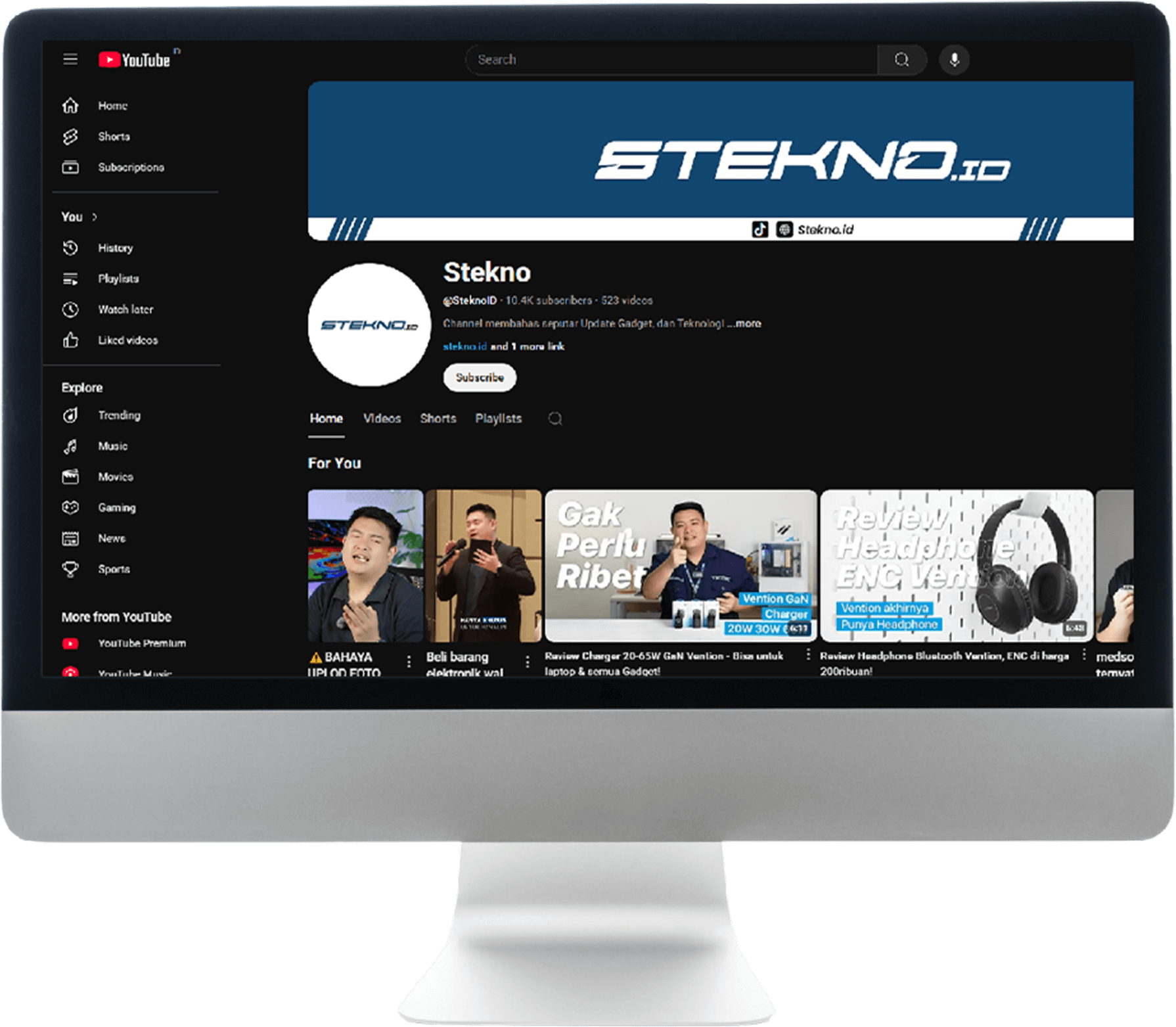 Platform YouTube Stekno.id menjadi wadah utama kami dalam membagikan konten video seputar teknologi — mulai dari review produk, unboxing, hingga panduan setup kreator. Audiens kami didominasi oleh Millennial dan Gen Z yang haus akan pengetahuan, tren terbaru, dan pengalaman nyata dalam dunia teknologi.